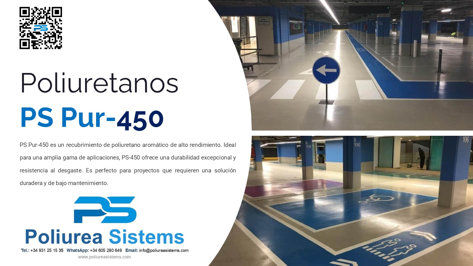 Pintura de poliuretano aromático de curado ultra-rápido para pintado de pavimentos industriales y aparcamientos. |